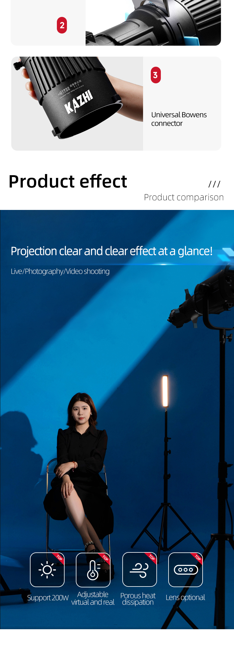 KAZHI Focalize Conical Art Plastic Snoot Special Effects Beam Light Cylinder Focusing Tube for Studio Photo Optical Condenser